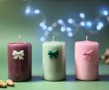 Candela grigio verde Ø 5 cm h. 8 cm - Con fiocco verde